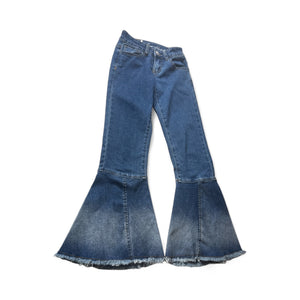 Used Good- Hippie Girl (Dillards)mid-rise super flare jeans, size 8, adjustable waist tabs