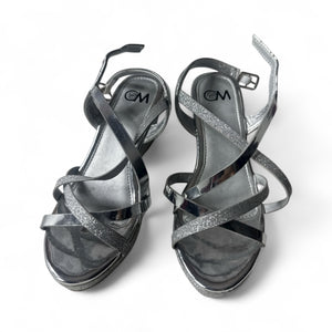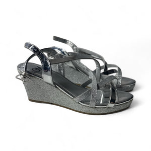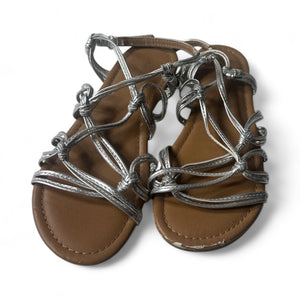Used Good- Silver Slippers strapped silver sandals, youth size 2
