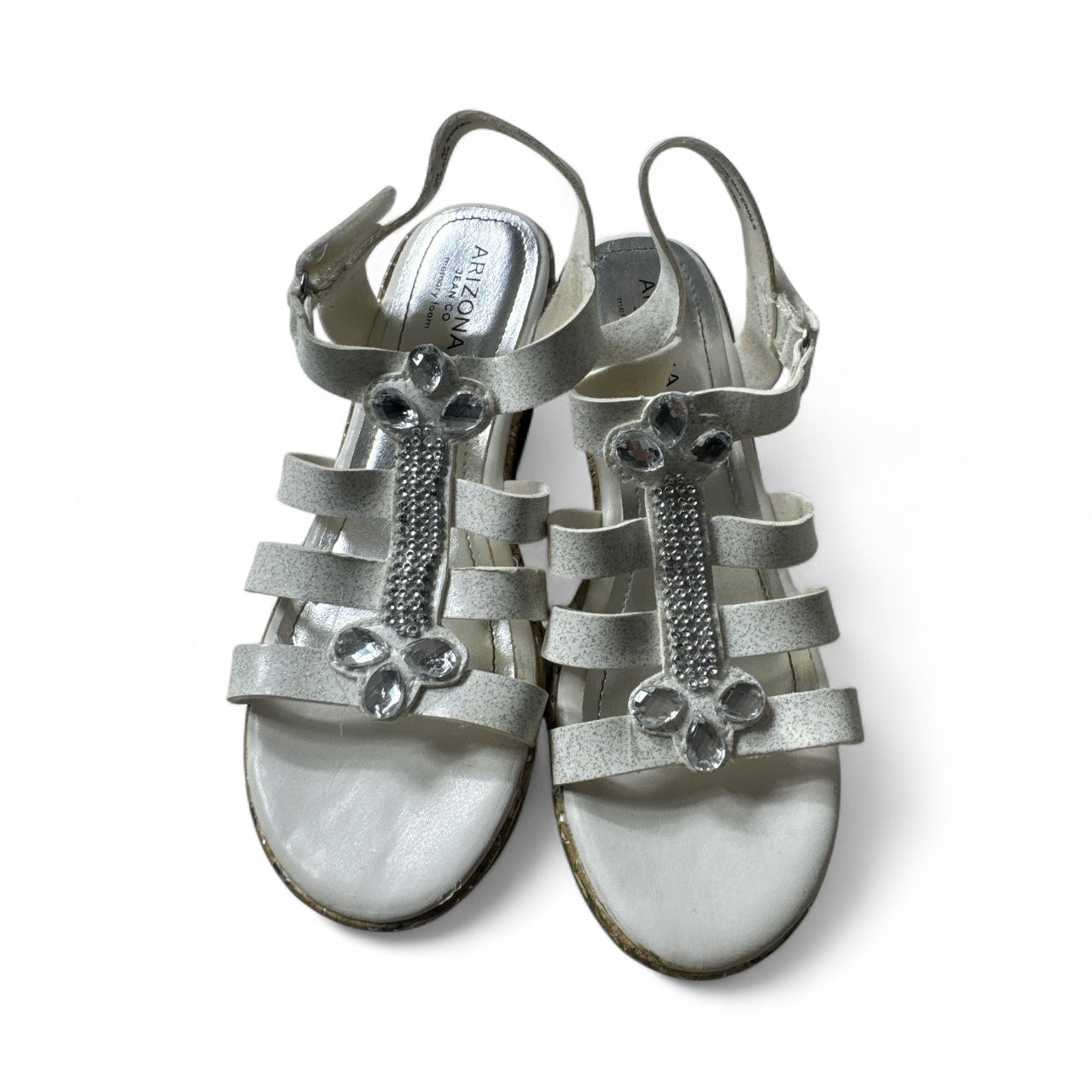 Used Good- Arizona Jean co- white cork decorative sandals, youth size 2