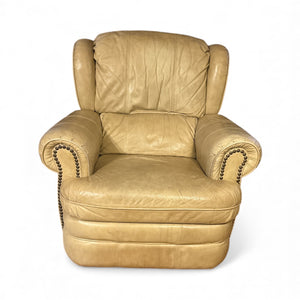 Used Fair- Leather recliner (ivory), tip of handle is torn, rest is in fair condition.Pet free & smoke free home. 33” (L) x 37” (w) x 37” (h)