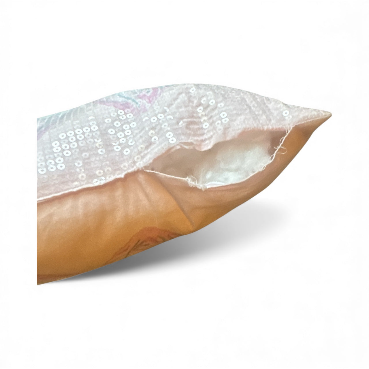 Used Fair- FREE- butterfly sequin throw pillow, rip on side that can be easily sewn . Pet free & smoke free home. 14 x 14